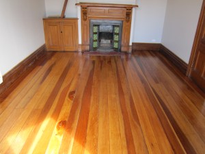 We sand right back to bare boards, making repairs as necessary along the way. We then apply a primer and at least two coats of polyurethane (lacquer) to ensure a hard wearing finish. The choice of finish is up to you – we offer a shiny gloss, a semi gloss or a matt finish.